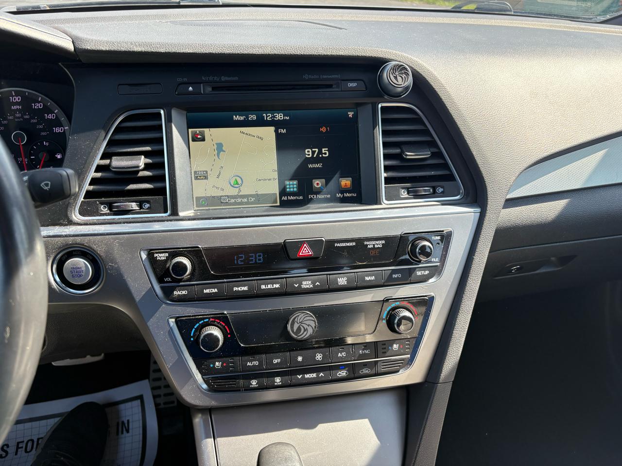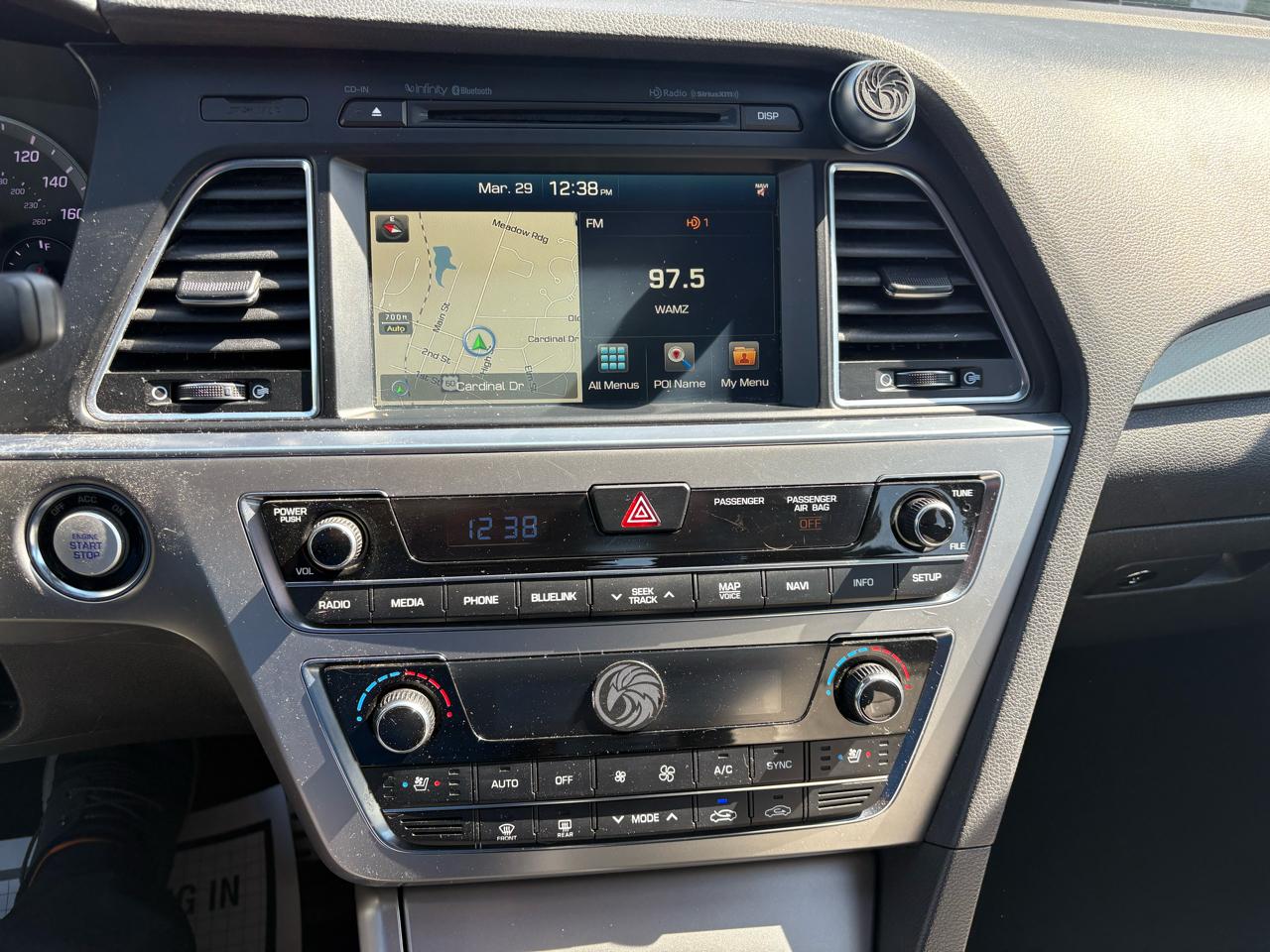 Stop now and see this full-size sedan that is loaded with everything and was a 1-owner vehicle. This 2015 Hyundai Sonata 2.0T Sport comes with power sunroof, power front seats, heated front and rear seats, cooled front seats, navigation, driver seat memory, backup camera, climate control, blind spot monitors, heated mirrors, bluetooth, alloy wheels and more.